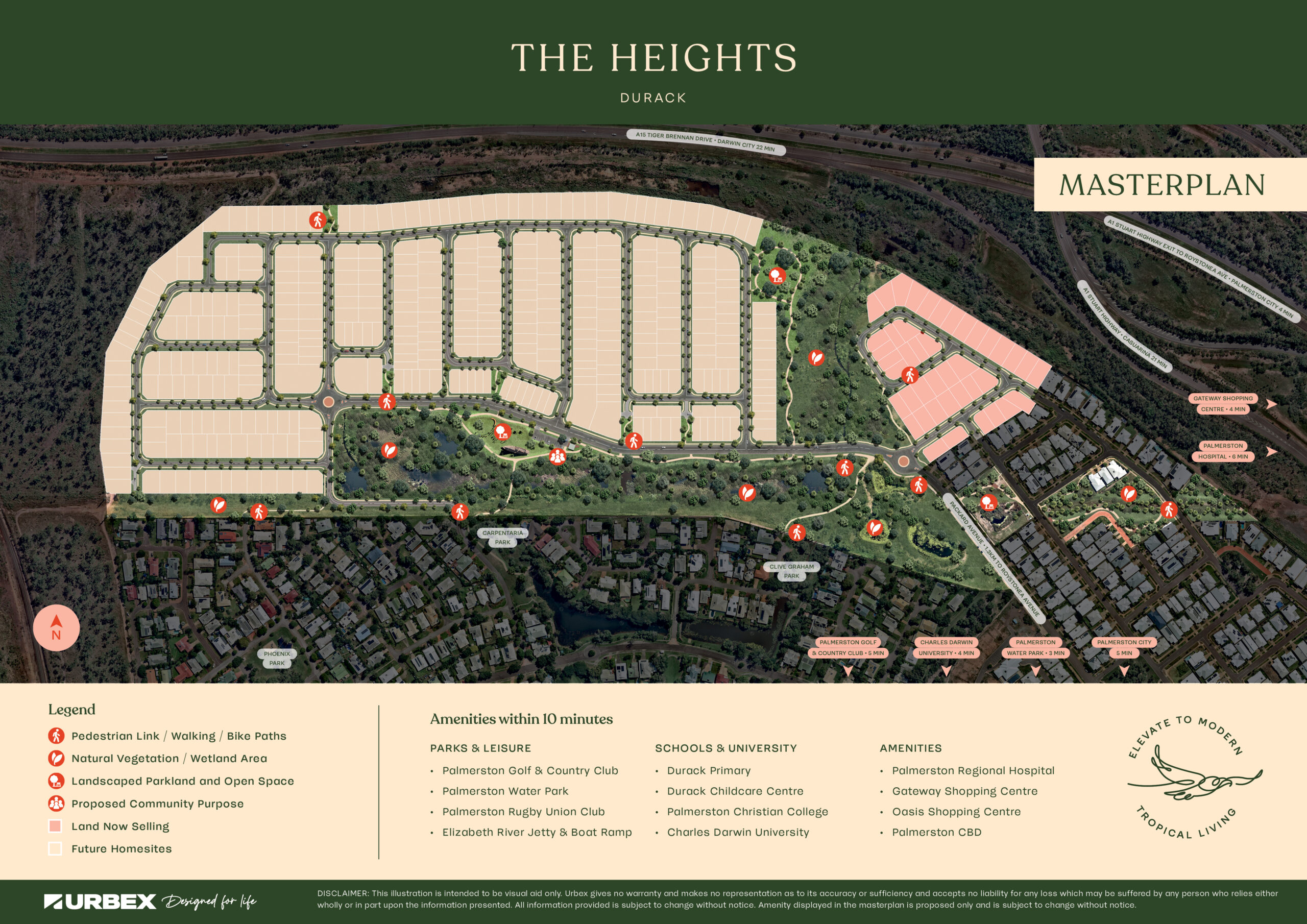 Long-Term Potential: Backed by award-winning national developer Urbex and a solid masterplan, The Heights Durack is a neighbourhood built to last. With the full community forecast for completion by 2032, every stage is planned with long-term liveability in mind. Well-connected now — and even better with the upcoming Palmerston Bus Interchange and road links — this is a place to grow, invest, and call home.